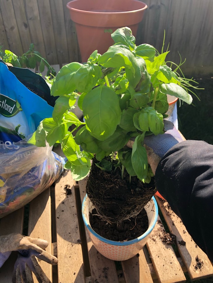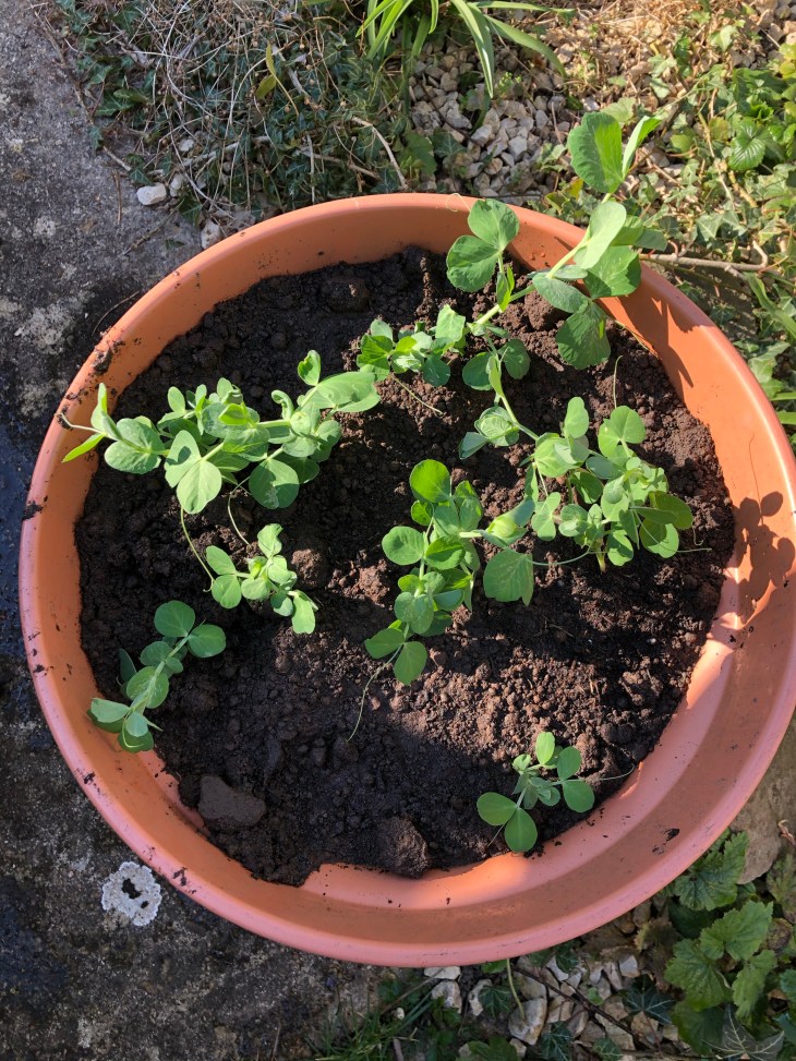 Yesterday I spent the afternoon in the garden. It was gloriously sunny, as it has been all week, which I love, though it is dangerous with my Lupus. (Another post on Lupus and sunlight at some point.) I had a bunch of living herbs to repot from my initial massive grocery delivery, and the baby pea plants my friend had brought. Plus, since I’d been in the hospital twice and had surgery this winter, I hadn’t touched anything since early November. It needed a lot of love– and still does, but I’ve made a start.